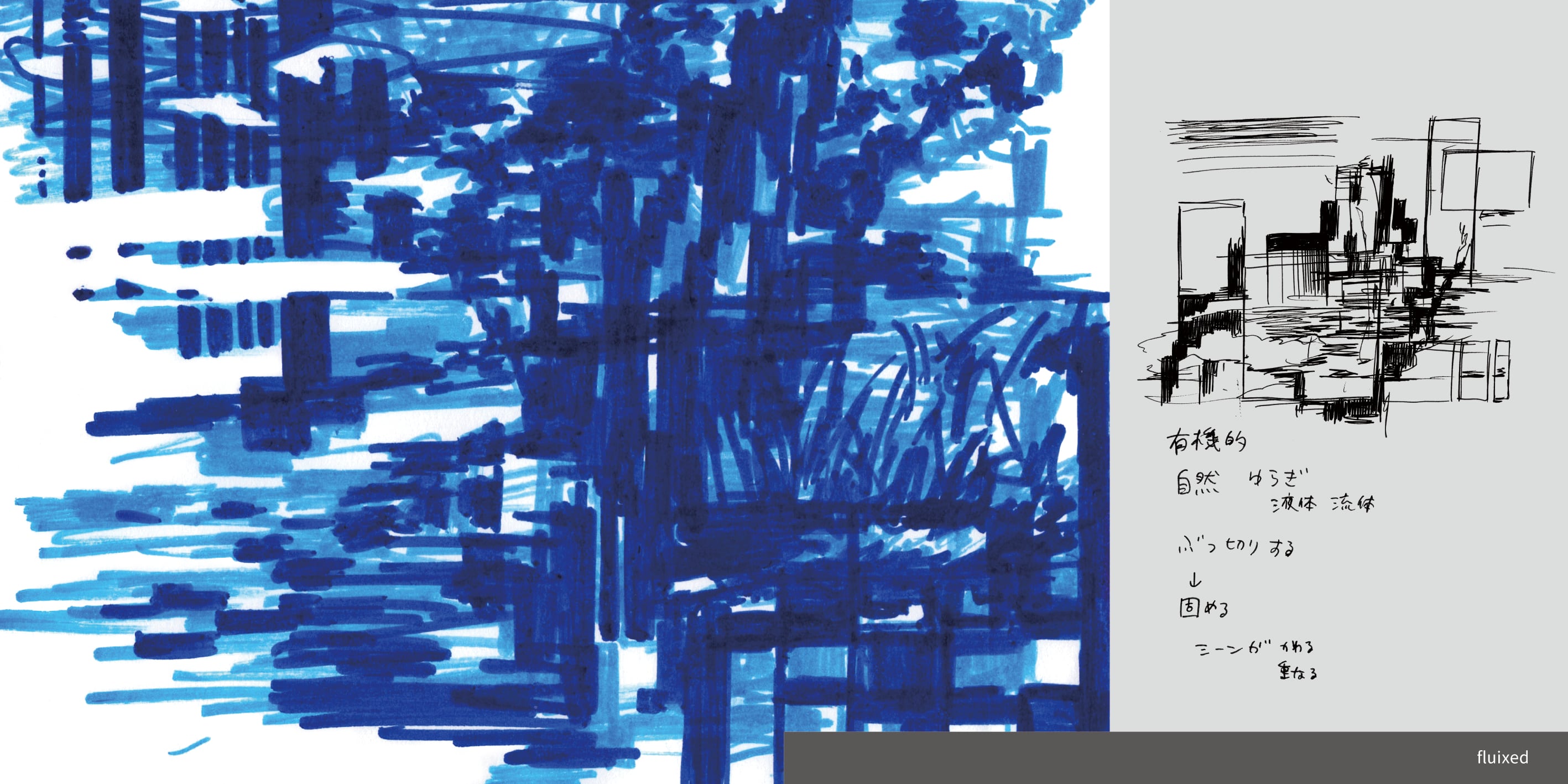 私が初めてCDアートワークを担当したLamanyaさんのアルバム『fluixed』の曲を聴きながら、流れ込んでくる音楽と、音楽から湧き上がる思考と、出力に至るまでのプロセスをZINEにしました。